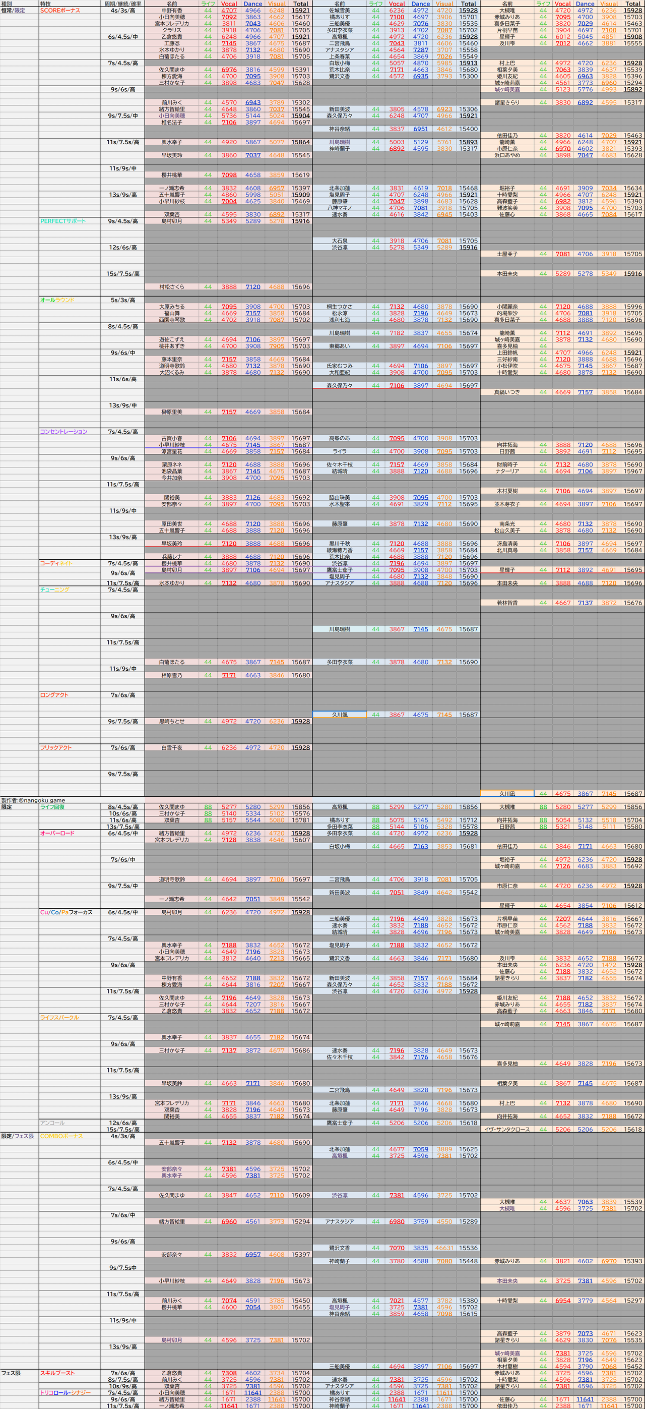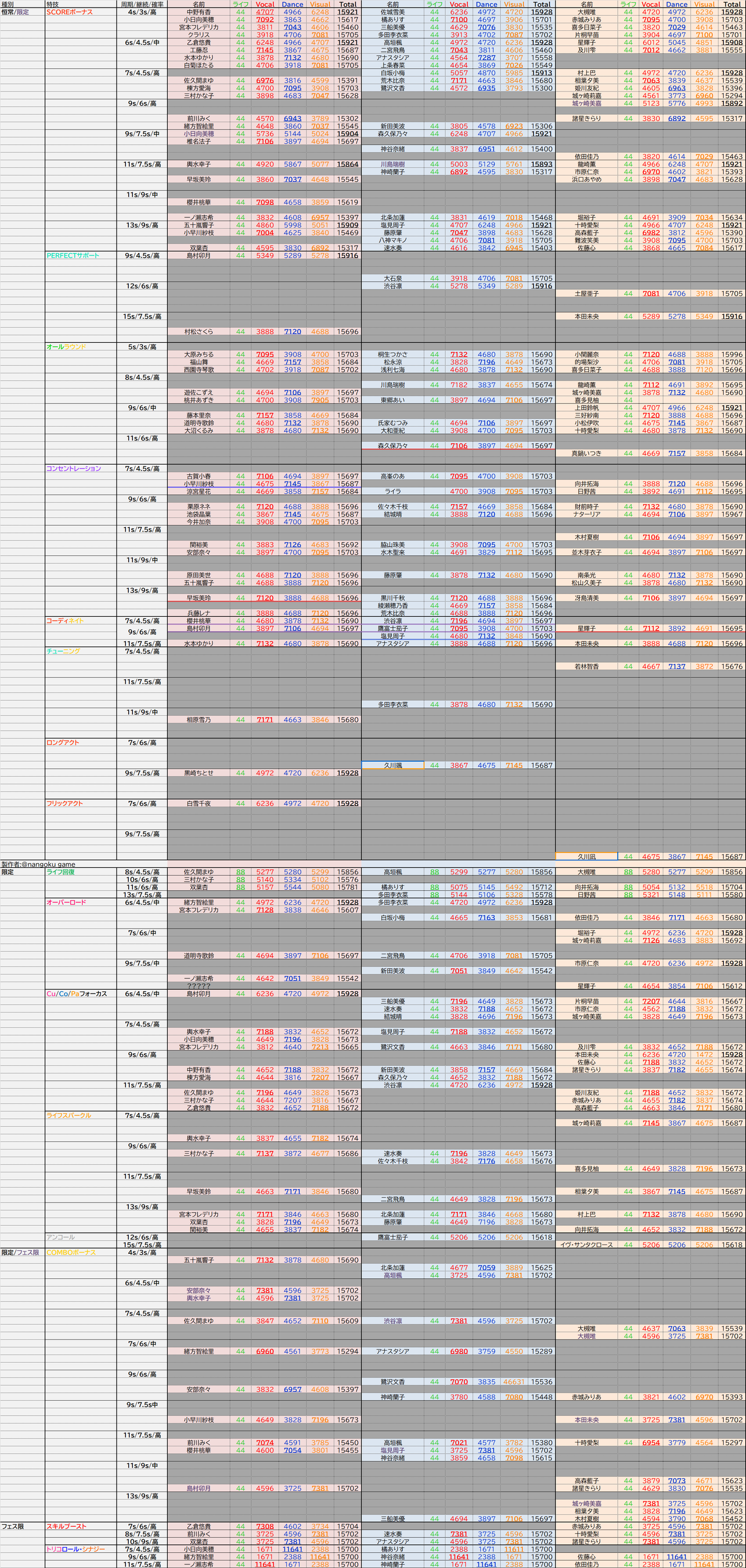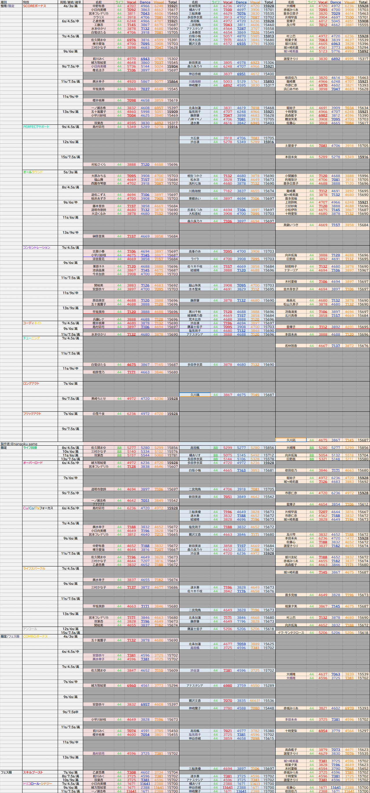 デレステSSR性能一覧表置き場+