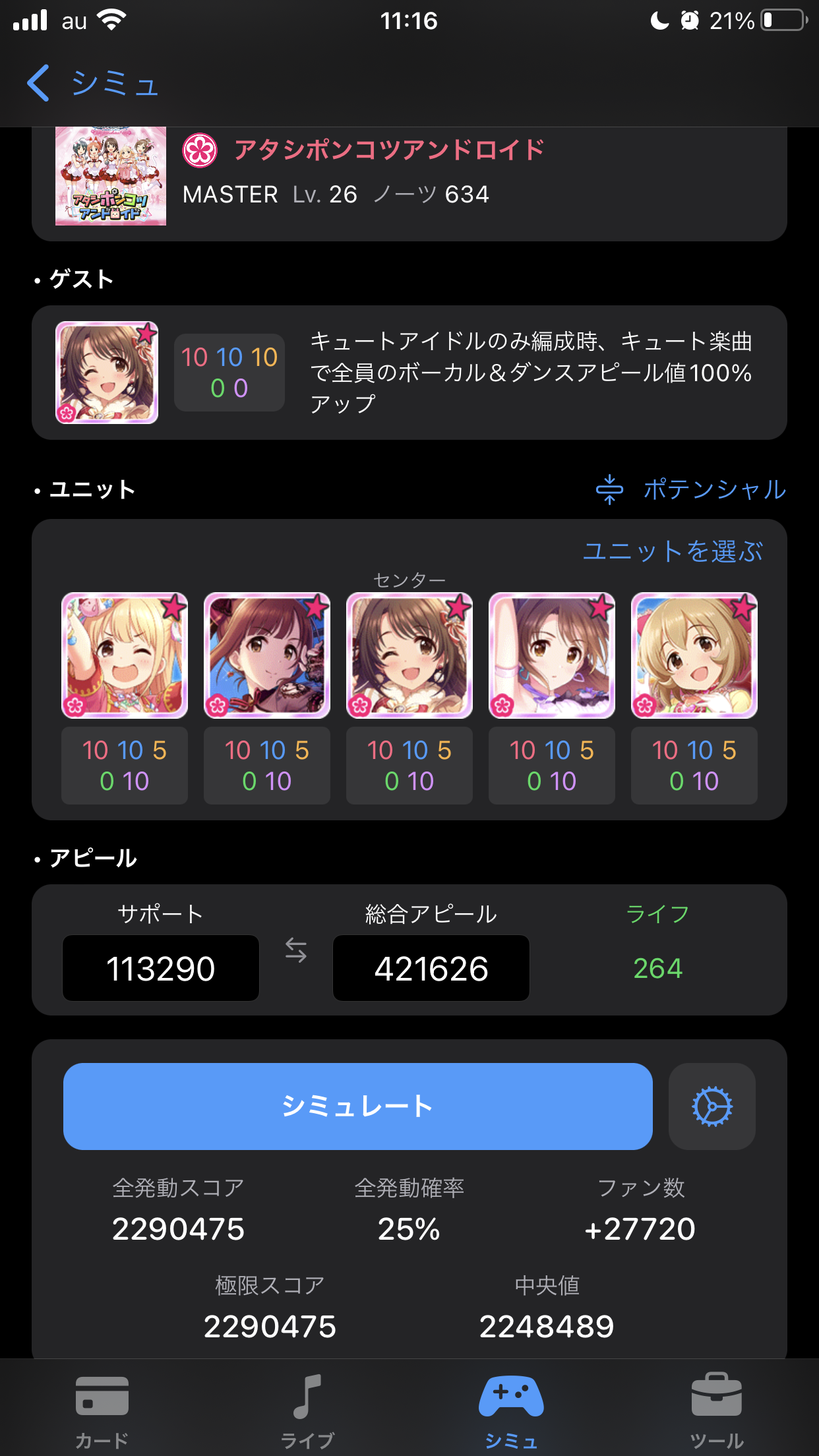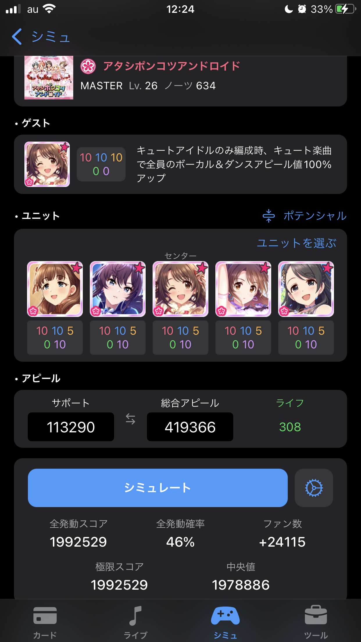 ミューチャル編成は「高倍率のセンター効果でアピール値を上げてスコアを出す」という
